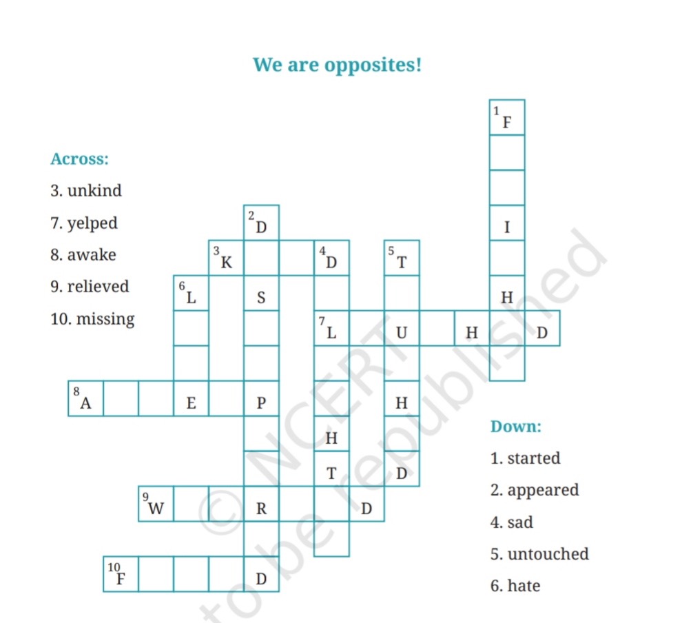 Now, take help from the words given as hints and fill up their opposites in the puzzle. (Note: All the words are from the story you have just read.)
